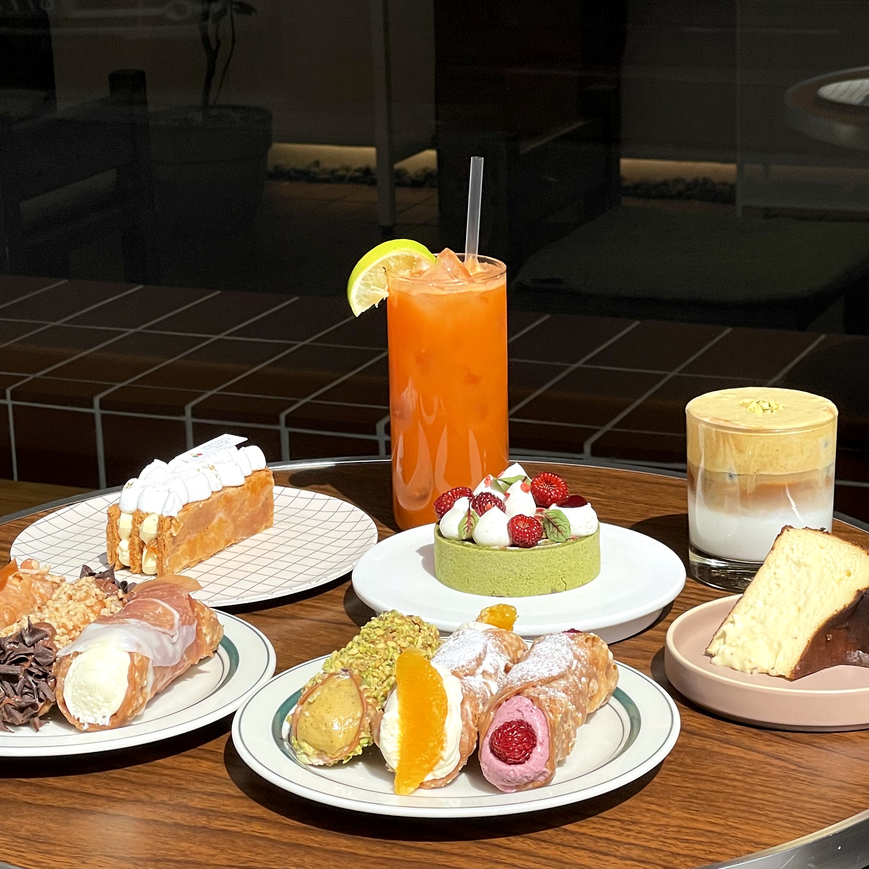 스폴리아텔레 쇼콜라 8,500 | 카놀리 6,000~7,500 | 말차딸기 프레지에 10,900 | 샤를로트 10,900 | 피스타치오크림라떼(시그니처) 7,500 | 밤말차라떼 6,500 | 딸기 티라미수(시즌 한정) 10,500 | 만돌라 10,500 | 파마산치즈 바스크 7,300
